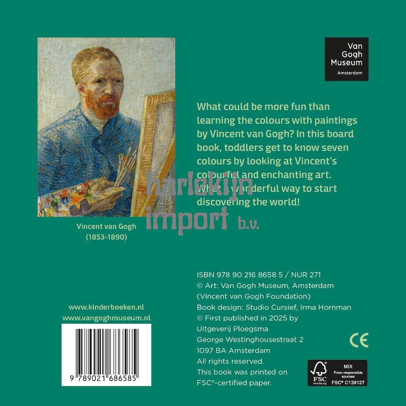 What could be more fun than learning colours with Vincent van Gogh’s paintings? In this board book, toddlers get to know seven colours through his colourful art works, from the radiant yellow of Sunflowers to the warm green of Trees and Undergrowth. What a wonderful way to start discovering the world!