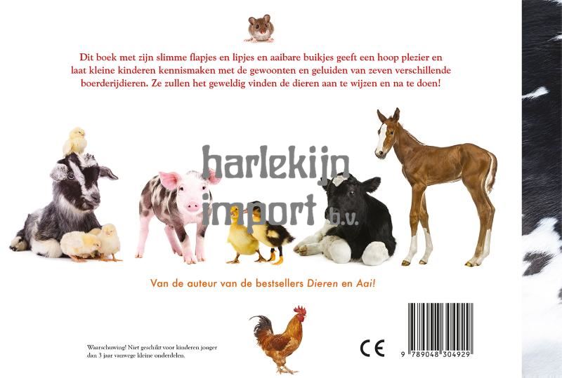 Dit boekje met zijn slimme flapjes en lipjes en aaibare buikjes geeft een hoop plezier en laat kleine kinderen kennismaken met de gewoonten en geluiden van zeven verschillende boerderijdieren. Ze zullen het geweldig vinden de dieren aan te wijzen en na te doen!