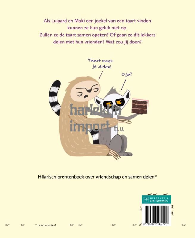 Als Luiaard en Maki een joekel van een taart vinden kunnen ze hun geluk niet op. Luiaard wil hem delen met hun vrienden, maar Maki ziet bij allemaal wel een bezwaar: Pauw wil vast niks eten wat mooier is dan hijzelf, Dolfijn gaat er ongetwijfeld kunstjes mee doen, Kameleon laat zich nooit zien… Er blijft maar één vriend over met wie Luiaard de taart kan delen: Maki! Zo gezegd, zo gedaan. Maar dan komt de jarige zijn taart ophalen…