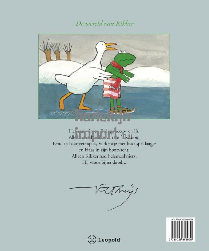 Het was winter. Er lag sneeuw en ijs. Alle dieren hielden van de frisse kou. Eend in haar verenpak, Varkentjes met haar speklaagje en Haas in zijn bontvacht. Alleen Kikker had helemaal niets. Hij vroor bijna dood...
