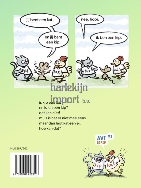 is kip een kat? en is kat een kip? piep de muis is het er niet mee eens. dat kan niet! maar dan legt kat een ei. hoe kan dat? In deze AVI Strip op M3-niveau is het een gezellige beestenboel! Margreet de Heer bedacht en tekende dit stripverhaal vol humor, speciaal voor lezers die nog wat leeskilometers voor de boeg hebben. Lezen wordt extra leuk door de speelse tekeningen die het verhaal nog duidelijker maken. Een woordje niet begrepen? De plaatjes helpen je op weg. Leesniveau: AVI M3.