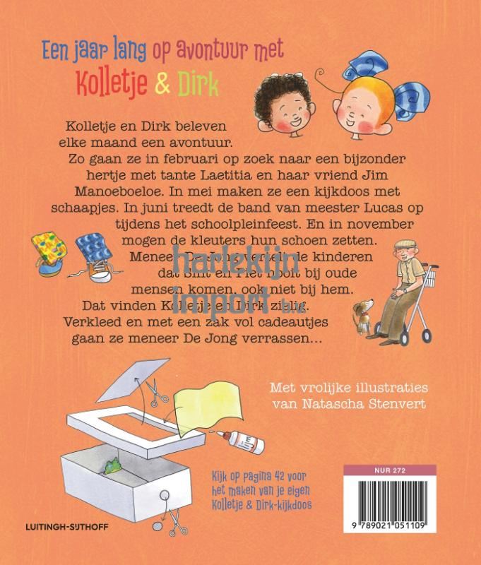 In Kolletje & Dirk het hele jaar rond van Pieter Feller en illustrator Natascha Stenvert beleven de twee ondernemende kleuters elke maand een nieuw avontuur. Dit voorleesboek vol vrolijke kleuterverhalen gaat dus het hele jaar mee! Zo leren Kolletje en Dirk in februari allerlei Afrikaanse slaapliedjes van Jim Manoeboeloe zingen. In mei maken ze een kijkdoos met schaapjes, waarin de zon altijd schijnt. In juni treedt de band van meester Lucas op tijdens het schoolpleinfeest. In november mogen de kleuters hun schoen zetten. Meneer De Jong vertelt de kinderen dat Sint en Piet nooit bij oude mensen komt, ook niet bij hem. Dat vinden Kolletje en Dirk zielig. Verkleed en met een zak vol cadeautjes gaan ze meneer De Jong verrassen…