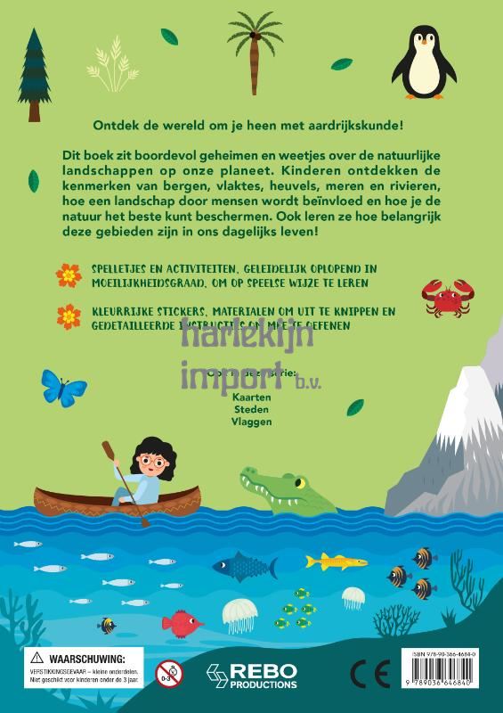 Ontdek de wereld om je heen met aardrijkskunde! Dit boek zit boordevol geheimen en weetjes over de natuurlijke landschappen op onze planeet. Kinderen ontdekken de kenmerken van bergen, vlaktes, heuvels, meren en rivieren, hoe een landschap door mensen wordt beïnvloed en hoe je de natuur het beste kunt beschermen. Ook leren ze hoe belangrijk deze gebieden zijn in ons dagelijks leven!