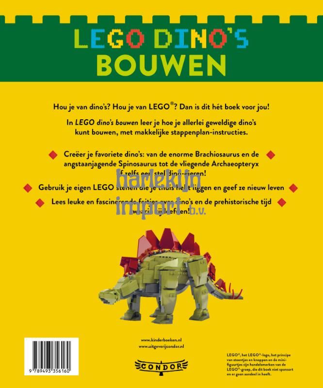 Volg de makkelijke stappenplan-instructies om je favoriete dino’s na te maken. Van de plantenetende Triceratops, Stegosarus en de Diplodocus, tot aan de vliegende Archaeopteryx en Pteranodon: ze staan allemaal in dit boek. Ook lees je leuke en fascinerende feitjes over dino’s en de prehistorische tijd waarin zij leefden. Een echte must-have voor alle dino- en LEGO fans.