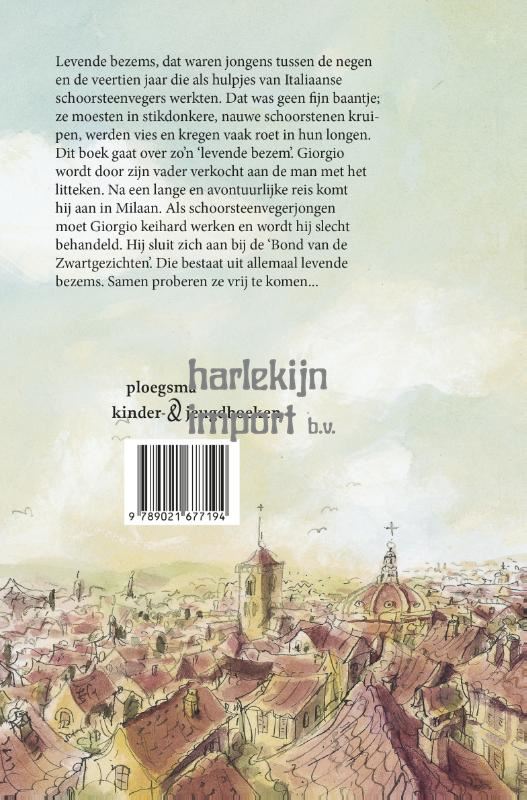 Dit boek gaat over zo'n 'levende bezem'. Giorgio wordt door zijn vader verkocht aan de man met het litteken. Na een lange en avontuurlijke reis komt hij aan in Milaan. Als schoorsteenvegerjongen moet Giorgio keihard werken en wordt hij slecht behandeld. Hij sluit zich aan bij de 'Bond van de Zwartgezichten'. Die bestaat uit allemaal levende bezems. Samen proberen ze vrij te komen...
