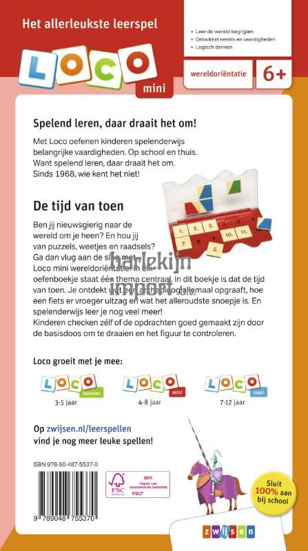 Wat doet een archeoloog? Hoe zag een fiets er vroeger uit? En wat is het oudste snoepje ter wereld? Deze en meer vragen worden beantwoord in het Loco mini oefenboek De tijd van toen. Kinderen ontdekken de wereld om hen heen en doen nieuwe kennis op. Spelenderwijs oefenen ze met logisch denken door de puzzels, weetjes en raadsels op te lossen. Leren met Loco is leuk en leerzaam! Dit oefenboekje is te gebruiken bij de Loco mini basisdoos. Deze basisdoos is los te bestellen. Leerdoelen: •Leer de wereld begrijpen •Ontwikkel kennis en vaardigheden •Logisch denken Met het zelfcorrigerende Loco oefent je kind spelenderwijs belangrijke vaardigheden. Op school en thuis. Want spelend leren, daar draait het om. Sinds 1968, wie kent het niet!