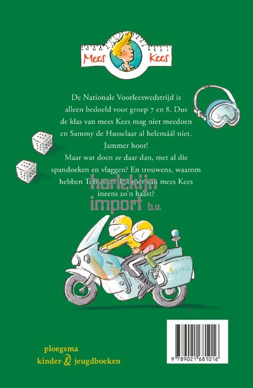 De Nationale Voorleeswedstrijd is alleen bedoeld voor groep 7 en 8. Dus groep 6b van mees Kees mag niet meedoen. Jammer hoor! Maar waarom hebben Tobias en de broer van mees Kees op de grote dag dan ineens zo’n haast om Sammy’s boek op te halen? Sammy de Husselaar kan toch niet voorlezen? En al helemaal niet voor een bomvolle zaal. Toch?