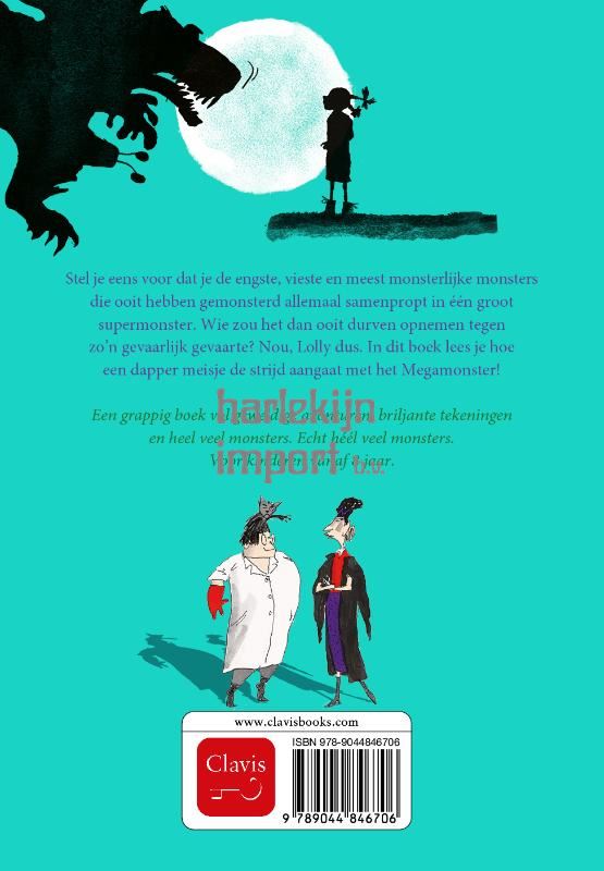 Stel je eens voor dat je de engste, vieste en meest monsterlijke monsters die ooit hebben gemonsterd allemaal samenpropt in één groot supermonster. Wie zou het dan ooit durven opnemen tegen zo’n gevaarlijk gevaarte? Nou, Lolly dus. In dit boek lees je hoe een dapper meisje de strijd aangaat met het Megamonster! Een grappig boek vol geweldige avonturen, briljante tekeningen en heel veel monsters. Echt héél veel monsters. Voor kinderen vanaf 8 jaar.