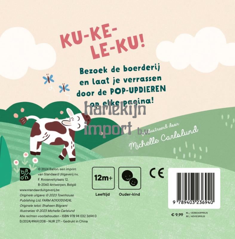 Wie zwemt er vrolijk in het riet? En wie speelt er in de modder? Trek eropuit naar de boerderij en laat je verrassen door de pop-updieren op elke pagina!