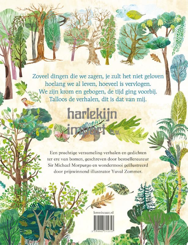Het is een gouden combinatie: gedichten en verhalen van Michael Morpurgo, de nestor van het Engelse kinderboek, en tekeningen van Yuval Zommer, de illustrator die geen introductie meer behoeft.Van een oude olijfboom die zich Odysseus herinnert tot aan een piepklein boompje dat wordt meegenomen door een vluchteling: ieder verhaal of gedicht is een liefdesbrief aan de kracht van bomen en bossen.Een prachtige cadeaubundel voor wie je iets prachtigs wilt schenken, zoals jezelf. Een schat om steeds weer op te pakken in een schitterende vertaling van Margaretha van Andel, de schrijfster van Verhalen van de Fladdertak.Een boek dat in de kast van geen enkele natuurliefhebber, verhalenverslinder of gedichtengenieter mag ontbreken.