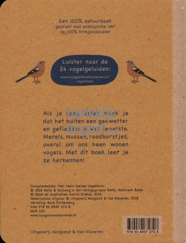 Van de merel tot de leeuwerik en van de huismus tot de nachtegaal, in dit boek maak je kennis met 24 inheemse vogelsoorten en hun onderscheidende kenmerken.