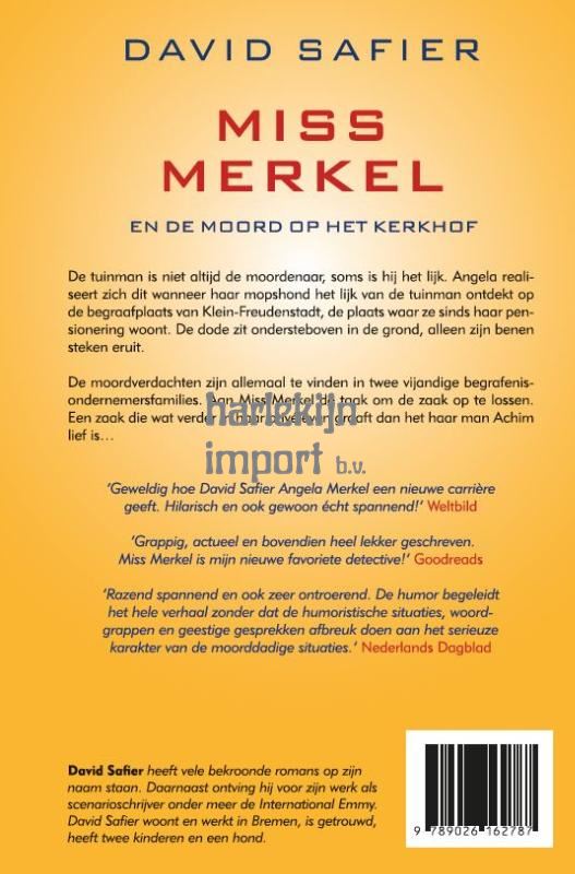 Miss Merkel en de moord op het kerkhof is deel 2 in de Miss Merkel-serie van David Safier. De tuinman is niet altijd de moordenaar, soms is hij het lijk. Angela realiseert zich dit wanneer haar mopshond het lijk van de tuinman ontdekt op de begraafplaats van Klein-Freudenstadt. De dode zit ondersteboven in de grond, alleen zijn benen steken eruit.