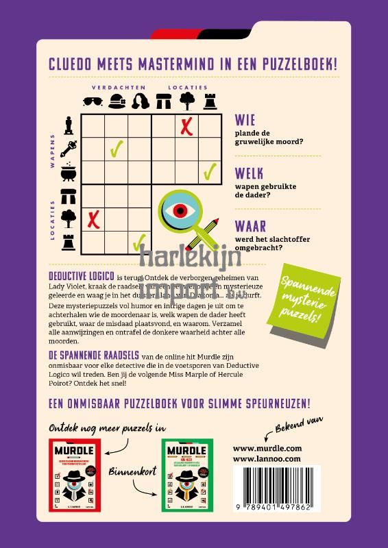 Deductive Logico is terug! Ontdek de verborgen geheimen van Lady Violet, kraak de raadsels van een eeuwenoude en mysterieuze geleerde en waag je in het duistere land van Drakonia... als je durft. Deze mysteriepuzzels vol humor en intrige dagen je uit om te achterhalen wie de moordenaar is, welk wapen de dader heeft gebruikt, waar de misdaad plaatsvond, en waarom. Verzamel alle aanwijzingen en ontrafel de donkere waarheid achter alle moorden. De spannende raadsels van de online hit Murdle zijn onmisbaar voor elke detective die in de voetsporen van Deductive Logico wil treden. Ben jij de volgende Miss Marple of Hercule Poirot? Ontdek het snel! Een onmisbaar puzzelboek voor slimme speurneuzen!
