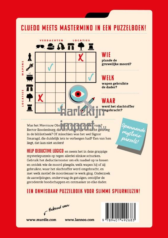 Wie plande de moord? Welk wapen gebruikte de dader? Waar werd het slachtoffer omgebracht? Help Detective Logico in zijn onderzoek. Ontdek wie, hoe, waar en waarom de misdaad gepleegd werd in deze grappige mini-mysteriepuzzels. Onderzoek de hints, ondervraag de getuigen en gebruik de kracht van het redeneren om het puzzelschema te vervolledigen en de dader te ontmaskeren. Los alle puzzels op en ontcijfer de geheime boodschap.