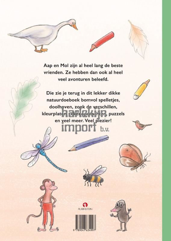 Het is tijd voor een nieuw doeboek van de beste vrienden Aap en Mol! Dit keer trekken Aap en Mol de natuur in. Zoek uit welk dier waar woont, maak vingerpoppetjes of de lekkerste bramenjam, kleur de mooiste kleurplaten in, maak kastanjepoppetjes, vind je weg in een doolhof, maak een puzzel of speel een spelletje met Aap en Mol. Voor urenlang lees-, speel- en knutselplezier!