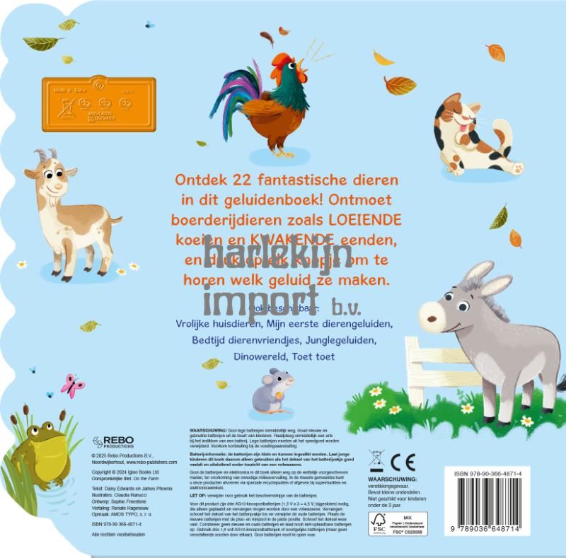 Ontdek 22 fantastische dieren in dit geluidenboek! Ontmoet boerderijdieren zoals LOEIENDE koeien en KWAKENDE eenden, en druk op elk knopje om te horen welk geluid ze maken.