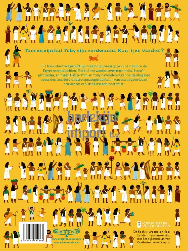 Dit boek staat vol prachtige zoekplaten waarop je kunt zien hoe de Egyptenaren leefden. Met talloze weetjes over mummies, farao's, piramides, en meer. Heb je Tom en Toby gevonden? Ga aan de slag met talloze andere speuropdrachten – van een mysterieuze amulet tot een sfinx die een poot mist!