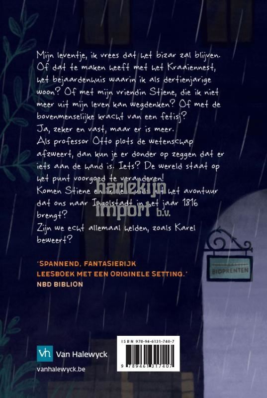 Als professor Otto plots de wetenschap afzweert, dan kun je er donder op zeggen dat er iets aan de hand is. Iets? De wereld staat op het punt voorgoed te veranderen! Komen Stiene en ik heelhuids uit het avontuur dat ons naar Ingolstadt in het jaar 1816 brengt? Zijn we echt allemaal helden, zoals Karel