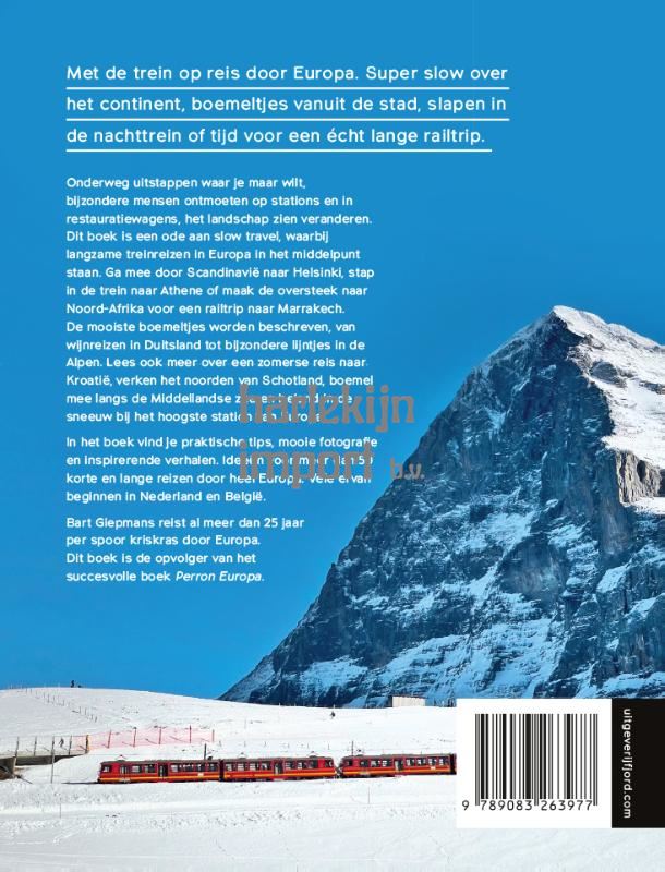 Perron Europa 2 “Kriskras door Europa, in alle windrichtingen, liggen tienduizenden kilometers aan spoorlijnen. Reizen over het spoor is slow travel, het landschap zien veranderen, onderweg uitstappen wanneer je wilt en mensen ontmoeten.” Aldus Bart Giepmans, auteur van het boek en verkozen tot reisjournalist van het jaar 2023. Het vervolg op het succesvolle boek Perron Europa, waarvan er meer dan 12.000 exemplaren werden verkocht. Een dik boek boordevol nieuwe reizen, heel veel inspiratie en nog meer praktische tips. En uiteraard prachtige fotografie, gemaakt door de auteurs tijdens hun reizen die ze speciaal voor dit boek maakten. Zo vind je in Perron Europa 2 onder andere: • Informatie voor mensen die graag met de trein zouden reizen maar niet weten hoe: alles over de Interrail Pass, het Deutschlandticket en nachttreinen • De 20 mooiste boemeltjes, onder andere door het Verenigd Koninkrijk, de Alpenlanden en langs de kust van Italië • Lange reizen waarbij alles draait om slow travel: van Amsterdam naar Marrakech, van Berlijn naar Athene, van Bordeaux naar Valencia maar ook van Wenen naar Kroatië • Plus: verhalen van diverse internationale reisjournalisten • Zowel geschikt voor wie een dag, een paar dagen of een paar weken weg wil