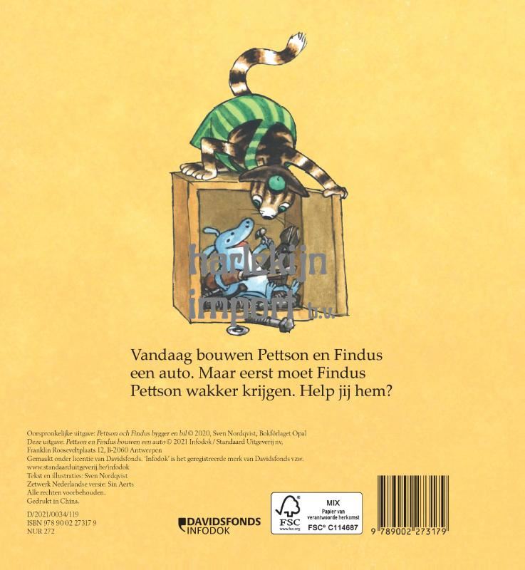 Vandaag gaan Pettson en Findus een auto bouwen. Maar eerst moet Findus Pettson wakker maken. Wil jij hem helpen? Een nieuw boek van het olijke duo opa Pettson en kat Findus. Deze keer een kartonboek met schuifjes en flapjes om actief aan het lezen te gaan. En intussen trainen kleine handjes ook hun fijne motoriek.