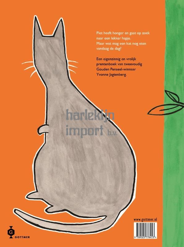 In 'Piet, de kat die wil weten wat hij wel mag eten' van Yvonne Jagtenberg wordt Piet, een bolle grijze kater, wakker met een knorrende maag. Vastberaden om iets te eten, staat hij op het punt de eerste vogel die hij ziet te bespringen. Maar dan neemt de vogel het woord en houdt een overtuigend betoog over zijn belangrijke rol in de wereld en waarom hij absoluut niet opgegeten mag worden. Bij elke volgende potentiële hap krijgt Piet dezelfde boodschap te horen. Piet begint te peinzen over zijn eigen plek op de wereld. Hij is maar een gewone kat, misschien niet zo belangrijk. Maar hij wil gewoon weten wat hij WEL mag eten. Gelukkig is er iemand die Piet ontzettend belangrijk vindt en ervoor zorgt dat hij niet hoeft te verhongeren. Ontdek ook het prachtige Prentenboekengeschenk 2023 'Mijn huis is jouw huis' van de getalenteerde prentenboekmaker Yvonne Jagtenberg. Haar andere boeken zijn al net zo uniek en eigengereid. Lees ook eens 'Ik ben Pippi niet!' (Bronzen Penseel), 'Hup Herman!' (Gouden Penseel) en 'Kop op, Herman!'. En voor peuters is er de Klein Geitje-serie in karton.