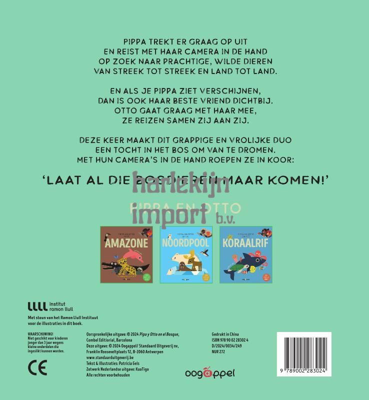 Pippa trekt er graag op uiten reist met haar camera in de handop zoek naar prachtige, wilde dierenvan streek tot streek en land tot land. En als je Pippa ziet verschijnen,dan is ook haar beste vriend dichtbij.Otto gaat graag met haar mee,ze reizen samen zij aan zij. Deze keer maakt dit grappige en vrolijke duoeen tocht in het bos om van te dromen.Met hun camera’s in de hand roepen ze in koor:‘Laat al die bosdieren maar komen!’