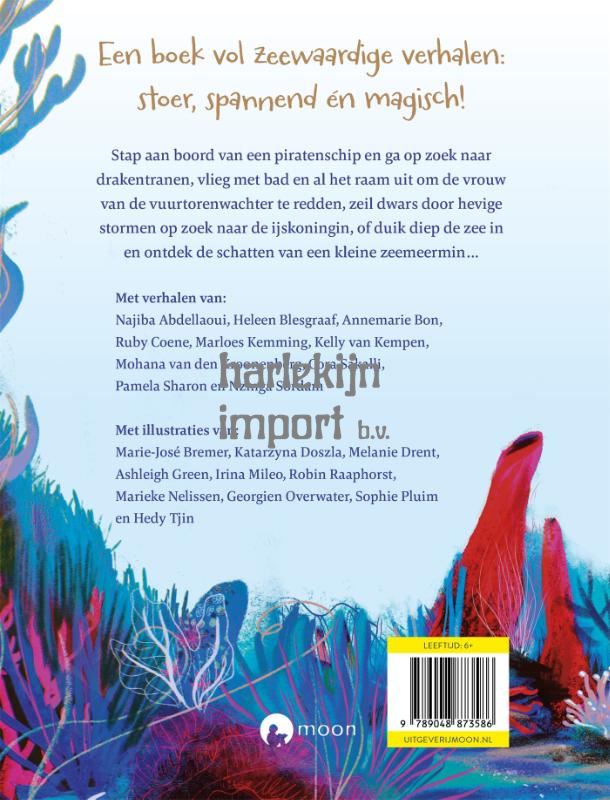 Een boek vol zeewaardige verhalen, stoer, spannend én magisch! Stap aan boord van een piratenschip op zoek naar drakentranen, droom weg bij de kreukelrijm van de inktvisser die graag gedichtjes over de zee schrijft, vlieg met bad en al het raam uit om de vrouw van de vuurtorenwachter te redden, zeil dwars door hevige stormen op zoek naar de ijskoningin, of duik diep de zee in en ontdekt de schatten van een kleine zeemeermin... Laat je meevoeren door tien heerlijke verhalen met prachtige illustraties van verschillende illustratietalenten!