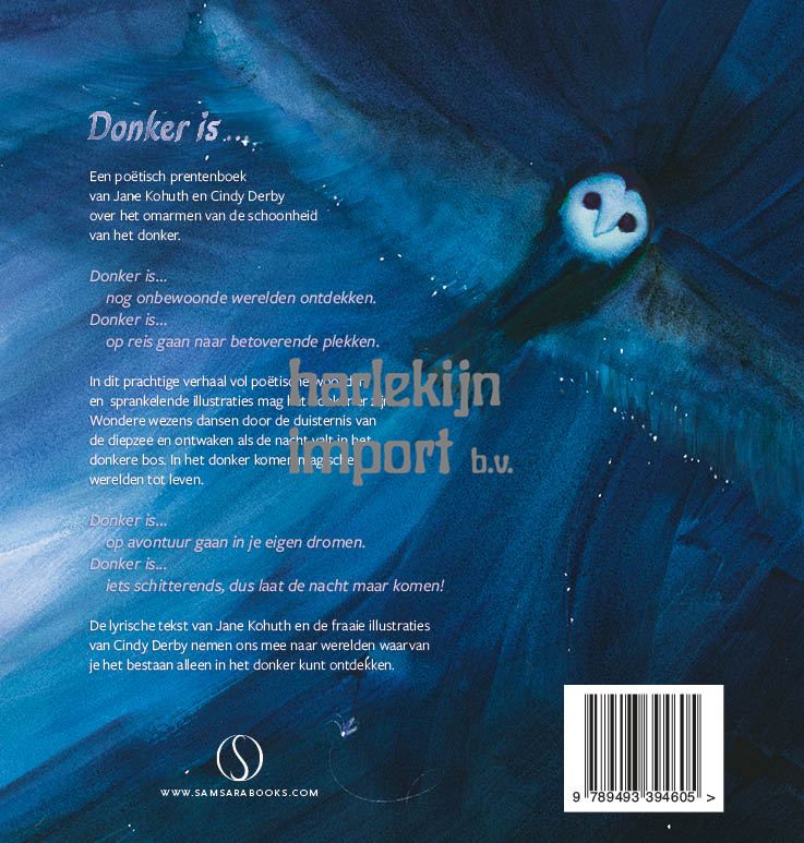 Een poëtisch prentenboek van Jane Kohuth en Cindy Derby over het omarmen van de schoonheid van het donker. 'Donker is… nog onbewoonde werelden ontdekken. Donker is… op reis gaan naar betoverende plekken.' In dit prachtige verhaal vol poëtische woorden en sprankelende illustraties mag het donker er zijn. Wondere wezens dansen door de duisternis van de diepzee en ontwaken als de nacht valt in het donkere bos. In het donker komen magische werelden tot leven. 'Donker is… op avontuur gaan in je eigen dromen Donker is… iets schitterends, dus laat de nacht maar komen!' De lyrische teksten van Jane Kohuth en de fraaie illustraties van Cindy Derby nemen ons mee naar werelden waarvan je het bestaan alleen in het donker kunt ontdekken.