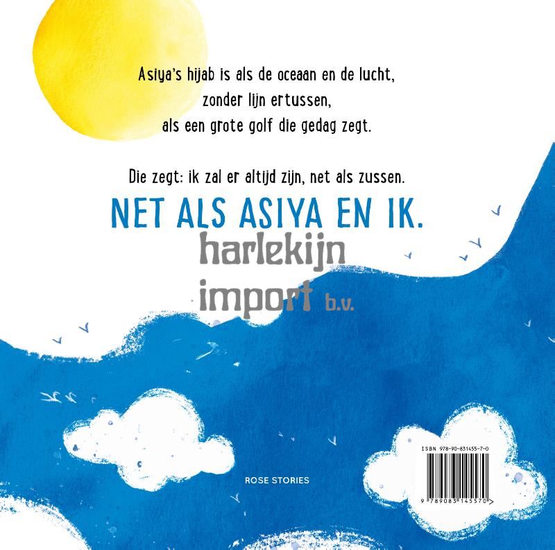Asiya's hijab is als de oceaan en de lucht, zonder lijn ertussen, als een grote golf die gedag zegt. Die zegt: ik zal er altijd zijn, net als zussen. Net als Asiya en ik.