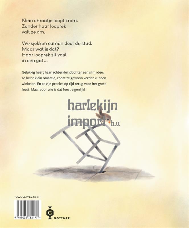 'Klein omaatje' is een hartverwarmend verhaal voor alle oma's en hun (achter)kleinkinderen. De rijmende tekst van Suzanne Weterings leest als een trein en door de vrolijke en sfeervolle illustraties van Nadia Meezen is dit prentenboek echt een feestje om samen te lezen. Klein omaatje gaat naar de stad om zich op te tutten, samen met haar achterkleindochter. Eerst naar de kapper, dan een nieuwe jurk ophalen. Met haar rollator schuifelt klein omaatje heel langzaam over het plein. Dan opeens... blijft haar rollator steken in een gat. Hij zit muurvast. Gelukkig heeft haar achterkleindochter een slim idee: ze kromt haar rug en klein omaatje gebruikt haar als rollator! Tjoeketjoek over het plein, naar de kapper, naar de jurk en weer naar huis. Precies op tijd voor het feest. Maar voor wie is dat feest eigenlijk? 'Klein omaatje' is het leukste kinderboek voor een fijn voorleesmoment met oma en kleinkinderen vanaf ongeveer 3 jaar.