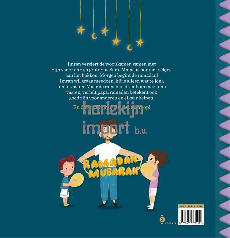'Toch een beetje ramadan' is een prentenboek met een betekenisvol verhaal over wat ertoe doet tijdens ramadan. Het is een spannend avontuur, met een originele ontknoping. Leuk voor wie ramadan viert, maar ook voor wie erover wil leren. Samen met zijn vader en grote zus Sara is Imran druk bezig met het versieren van de woonkamer. Morgen begint de ramadan! Sara doet al een halve dag mee met vasten, maar Imran is daar nog te jong voor. Dat vindt Imran wel jammer. Gelukkig kan hij ook op andere manieren aan ramadan meedoen, vertelt zijn vader: ramadan draait om goed zijn voor elkaar en iets voor een ander betekenen. Dat kan Imran wel. Wanneer hij een gewond katje vindt, krijgt Imran een kans om dat te bewijzen. Zijn zoektocht naar het baasje van de kat brengt hem naar een wel heel bijzondere plek. Hasna Elbaamrani kreeg veel lof voor 'Duizend-en-één paarse djellaba's', dat werd bekroond met een Vlag en Wimpel en een plekje in de Prentenboek Top 10 bemachtigde. Illustrator Rhaida El Touny wekt het verhaal tot leven in warme, kleurrijke prenten. 'Toch een beetje ramadan' is een kinderboek voor kinderen vanaf 4 jaar.