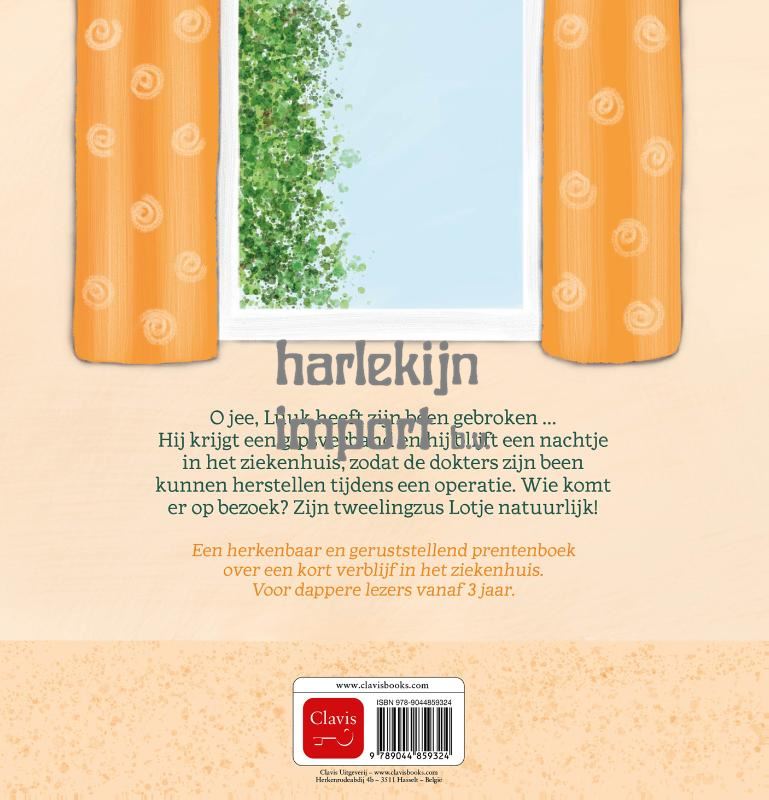 O jee, Luuk heeft zijn been gebroken … Hij krijgt een gipsverband en hij blijft een nachtje in het ziekenhuis, zodat de dokters zijn been kunnen herstellen tijdens een operatie. Wie komt er op bezoek? Zijn tweelingzus Lotje natuurlijk! Een herkenbaar en geruststellend prentenboek over een kort verblijf in het ziekenhuis. Voor dappere lezers vanaf 3 jaar.