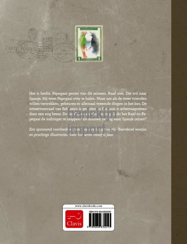 Het is herfst. Papegaai geniet van dit seizoen. Raaf niet. Die wil naar Spanje. Hij weet Papegaai over te halen. Maar net als de twee vrienden willen vertrekken, gebeuren er allemaal vreemde dingen in het bos. De wintervoorraad van Eekhoorn is gestolen en Bosmuis is achternagezeten door een eng beest. De bosdieren worden angstig. Lukt het Raaf en Papegaai de indringer te stoppen? En kunnen ze nog naar Spanje reizen?