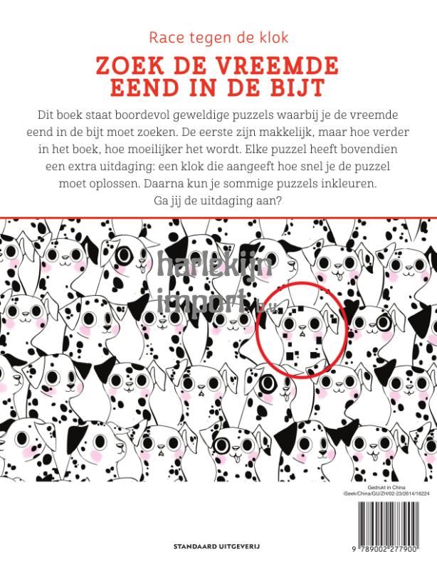Dit boek staat boordevol geweldige puzzels waarbij je de vreemde eend in de bijt moet zoeken. De eerste zijn makkelijk, maar hoe verder in het boek, hoe moeilijker het wordt. Elke puzzel heeft bovendien een extra uitdaging: een klok die aangeeft hoe snel je de puzzel moet oplossen. Daarna kun je sommige puzzels inkleuren. Ga jij de uitdaging aan?