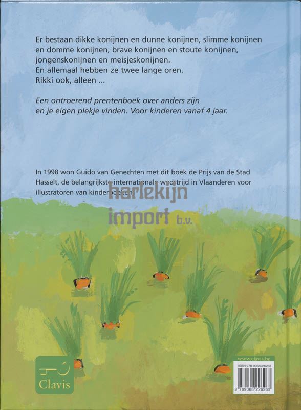 Er bestaan dikke konijnen en dunne konijnen, slimme konijnen en domme konijnen, brave konijnen en stoute konijnen, jongens-konijnen en meisjes-konijnen. En allemaal hebben ze twee lange oren. Rikki ook, alleen...