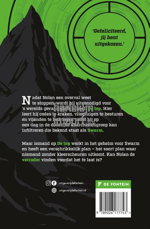Een spannend avontuur boordevol huiveringwekkende situaties, hightech snufjes en stoere jonge spionnen. Nolan stopt een overval en wordt uitgenodigd voor 's werelds gevaarlijkste school: De top. Hier leert hij codes te kraken, vliegtuigen te besturen en vijanden te bedriegen zodat hij op een dag in de dodelijke anarchistengroep die bekend staat als SWARM kan infiltreren. Maar iemand op De top werkt in het geheim voor SWARM, en ze hebben een verschrikkelijk plan - het soort waar niemand heel uitkomt. Kan Nolan de verrader vinden voordat het te laat is?