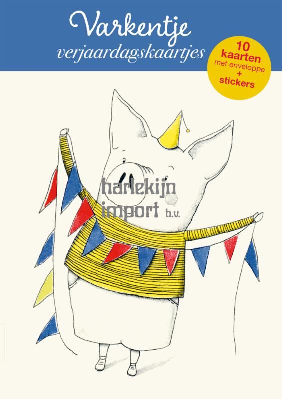 Hoera! Een kaartje voor je verjaardag! Tien kaarten van Varkentje om je vriendjes en familie een fantastische verjaardag te wensen. Verpakt in een handig doosje met stickers en enveloppen.