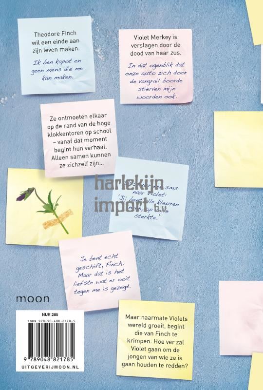 Maar naarmate Violets wereld groeit, begint die van Finch te krimpen. Hoe ver zal Violet gaan om de jongen van wie ze is gaan houden te redden?