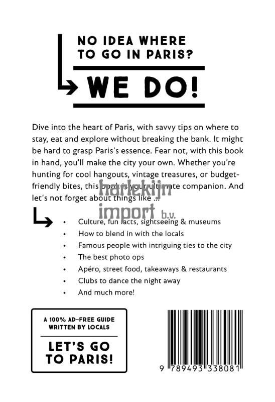 No idea where to go in Paris? We do! Dive into the heart of Paris, with savvy tips on where to stay, eat and explore without breaking the bank. It might be hard to grasp Paris’s essence. Fear not, with this book in hand, you’ll make the city your own. Whether you’re hunting for cool hangouts, vintage treasures, or budget-friendly bites, this book is your ultimate companion. And let’s not forget about things like ... • Culture, fun facts, sightseeing & museums • How to blend in with the locals • Famous people with intriguing ties to the city • The best photo ops • Apéro, street food, takeaways & restaurants • Clubs to dance the night away • And much more! A 100% ad-free guide written by locals. Let’s go to Paris!