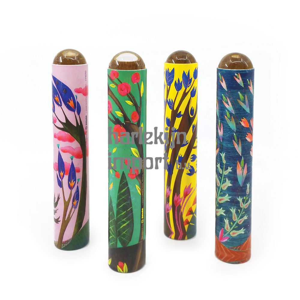 Het display bevat 3 Crystal Ball Caleidoscopen van elk ontwerp: Ocean Floor, Seasons, Happy Birds, Forest Dance.