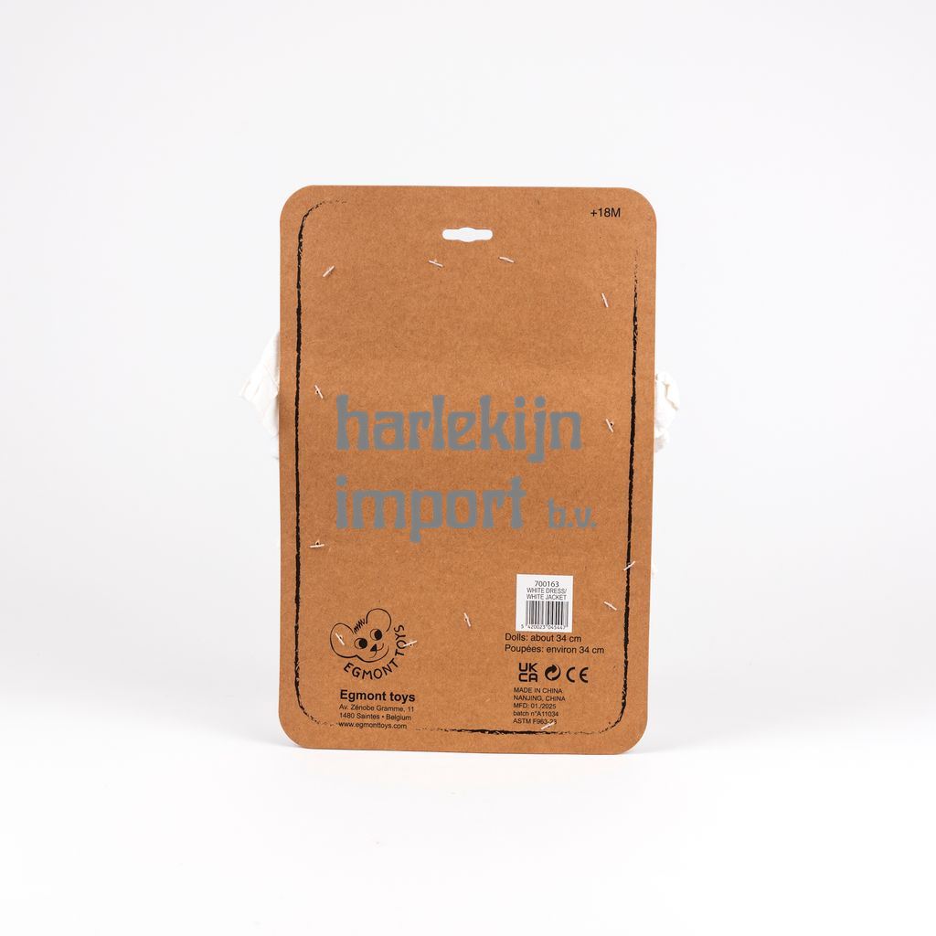 Poppenkleding: Witte Jurk/Witte Jas. 4 delig. 2+