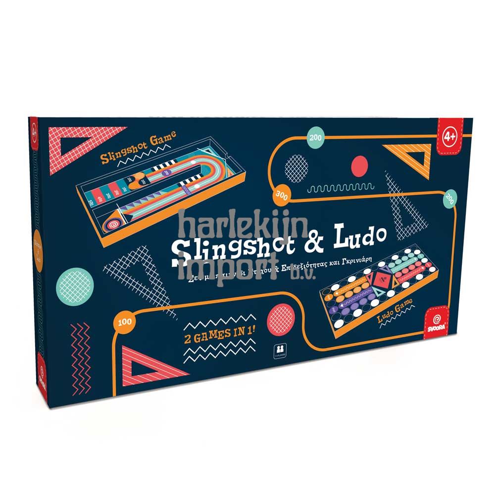Een "2 in 1" bordspelset met onze favoriete spellen Slingshot & Ludo voor eindeloos veel speelplezier!