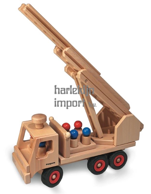 FAGUS Houten brandweerauto bestuurbaar 40 cm + 6 poppetjes. 3+ |