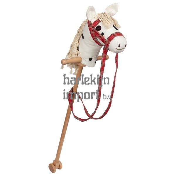 Stokpaardje wit met donkerbruine stippen. 95 cm. 3+