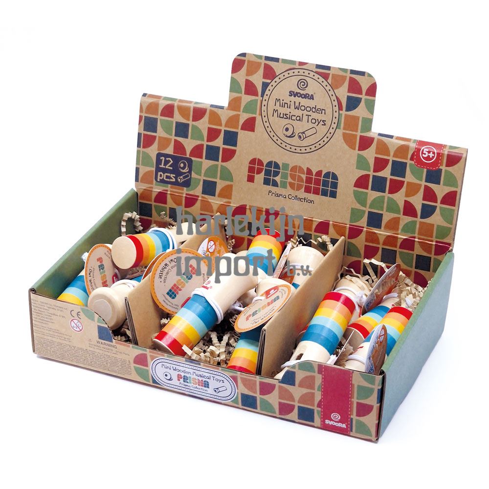 Dsp. Fluitje met uil geluid. Prisma. 3x3x8 cm. 12 stuks in display. 5+ |