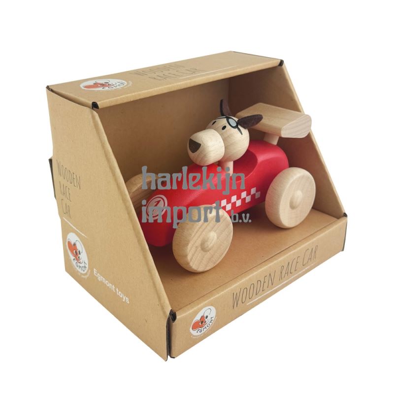 Egmont Houten raceauto met hond. 12x7x7 cm. 1+ |