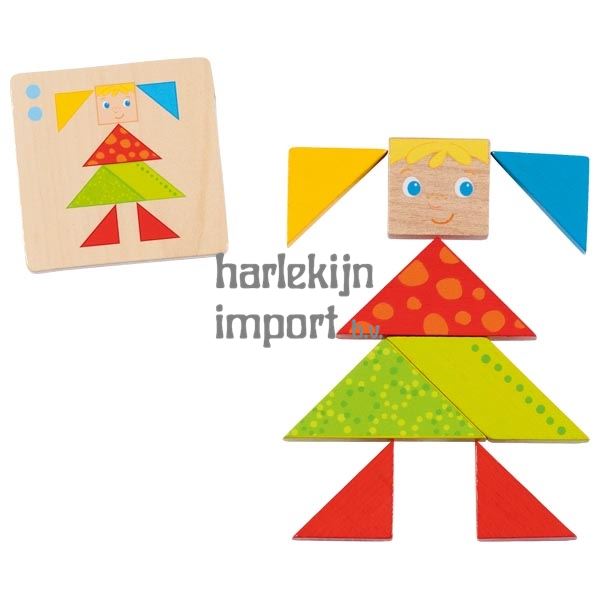 Kleurrijke tangramwereld. 37 delig. 6x6x0,4 cm. 3+ |