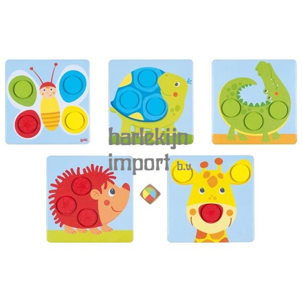 Mijn eerste kleursorteerspel. 22 delig. 5 motieven. 17x17 cm. 2+