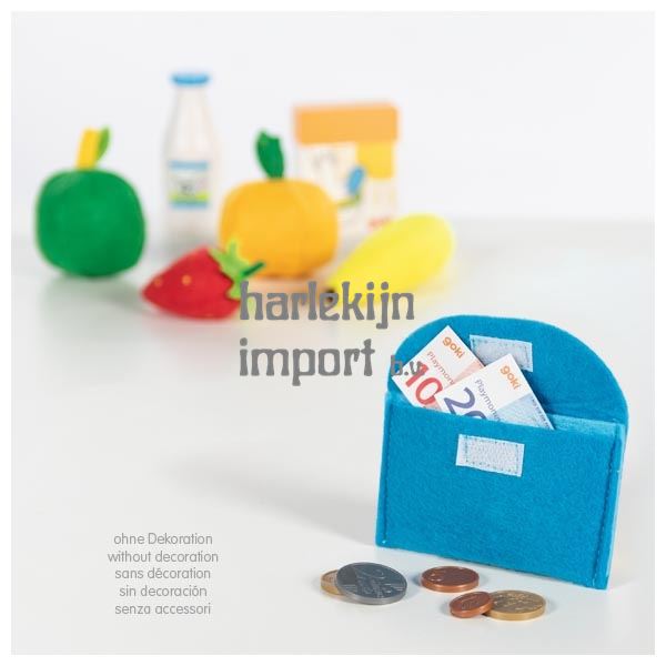 Vilten boodschappentas met accessoires. 9 delig. 22x18x12 cm. 3+