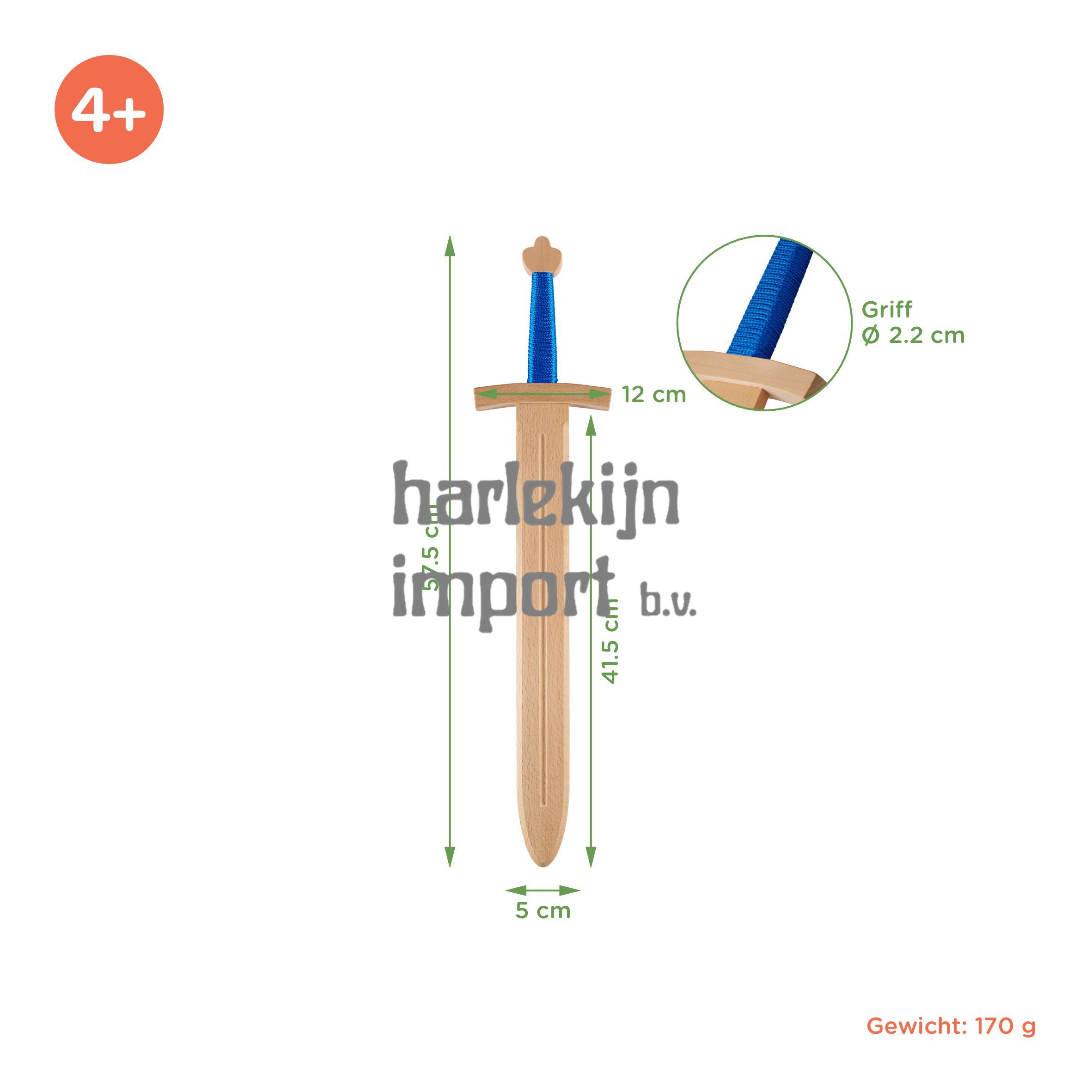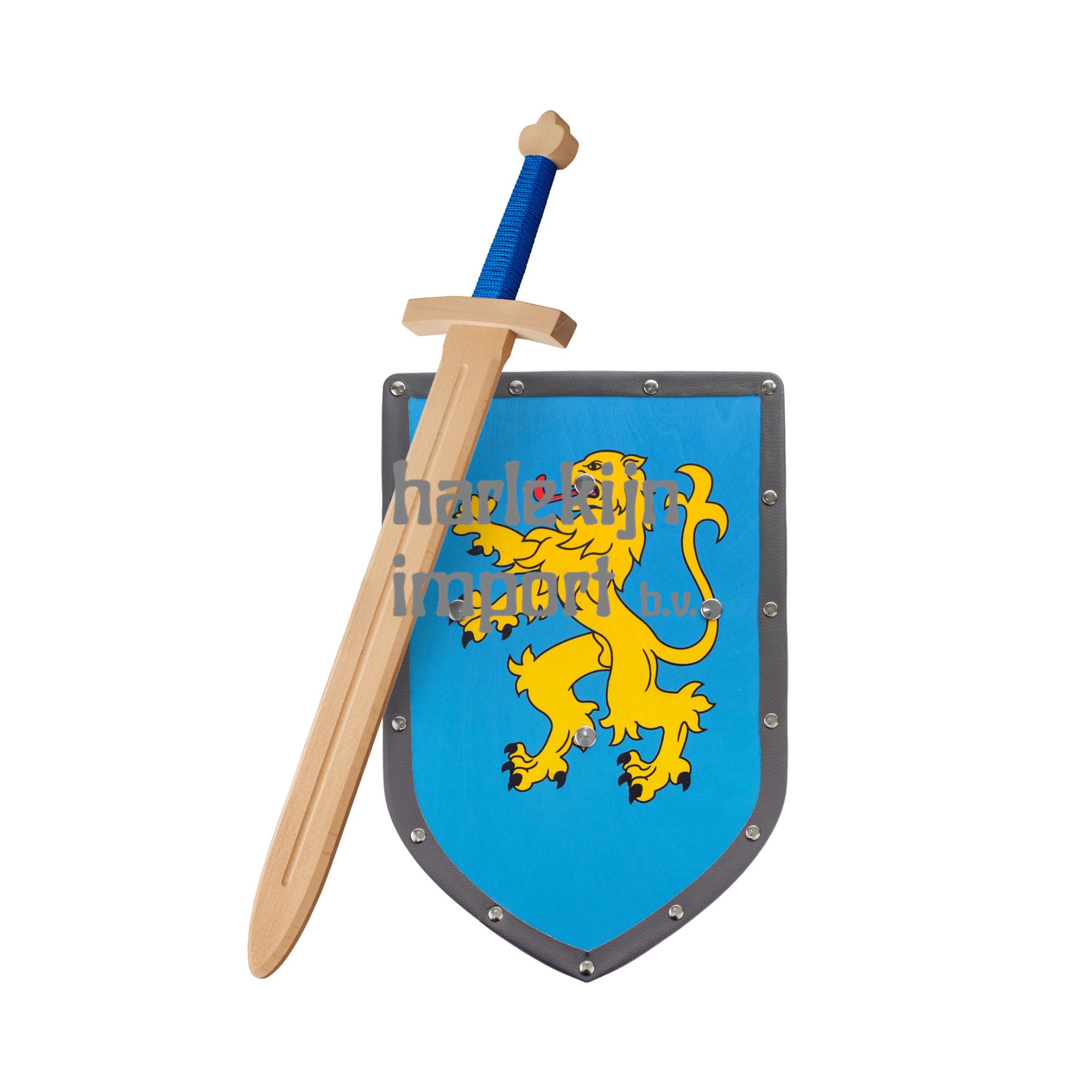 Woodsy: houten set: Zwaard en schild, kinderen, 57,5x12x5 cm, van beukenhout. Schild: 26x39 cm.